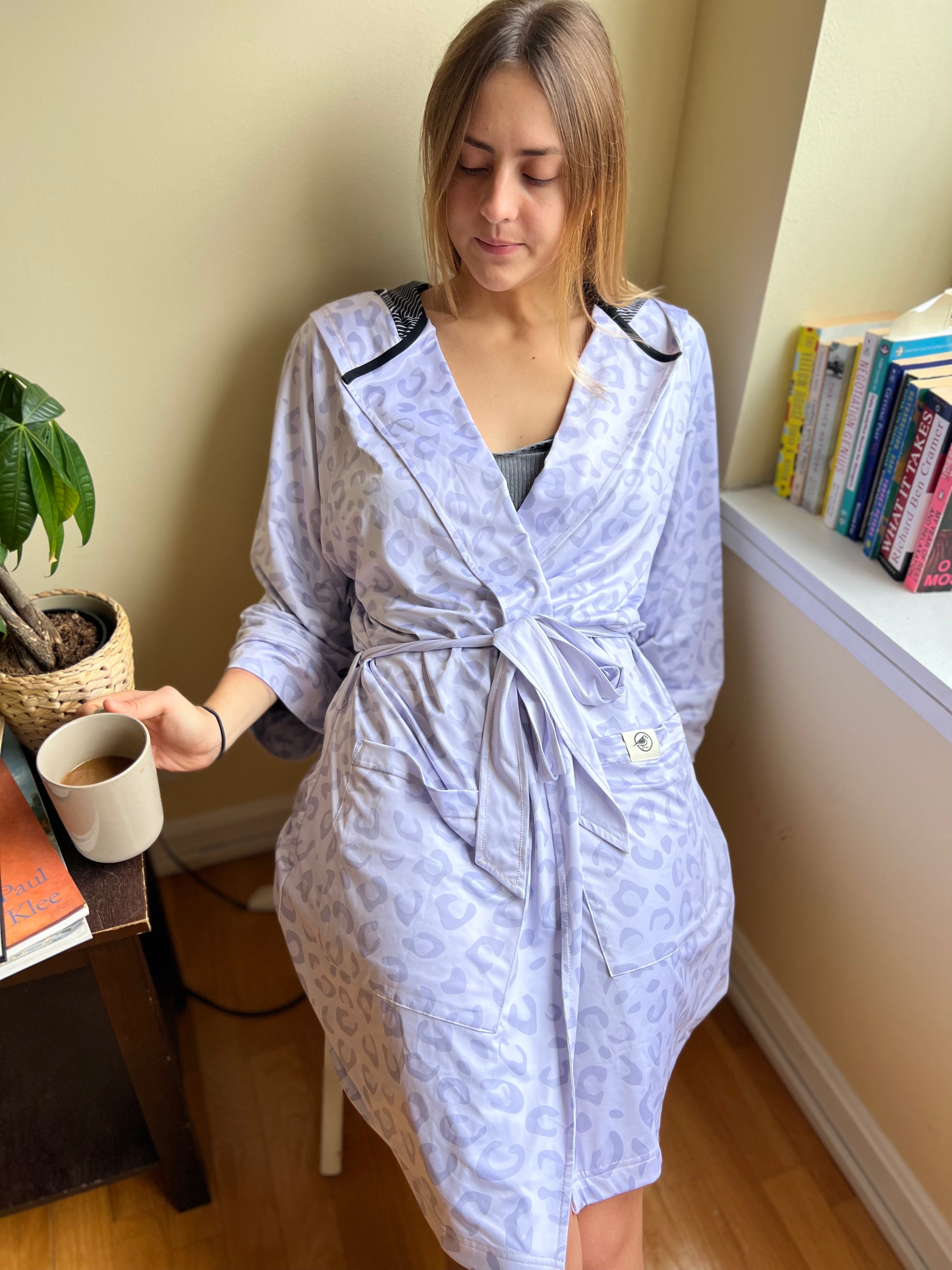 Your chances of a seeing a Snow Leopard in the wild are almost nil- you'd have to travel to the mountainous regions of central Asia and brave the wind and snow of the alpine, possibly climbing as high as 18,000 feet just for a chance of spotting one. If trekking through the Himalayas doesn't fit your schedule right now, grab yourself one of these robes to rock while you dial in a Snow Leopard documentary from the comfort of your couch or favorite chair. Just like the mountain cat it's named after, this print is exceedingly rare, soft and sleek.
